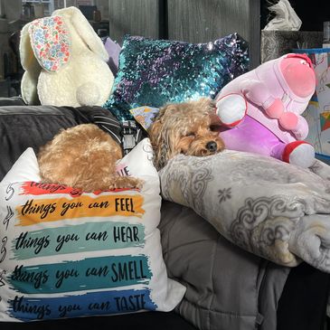 Koda is a 2+ year-old Yorkie-poo who is working on his listening and people skills. Koda has no social anxiety, and he loves giving puppy kisses, receiving lots of pets, and playing fetch with anyone willing.